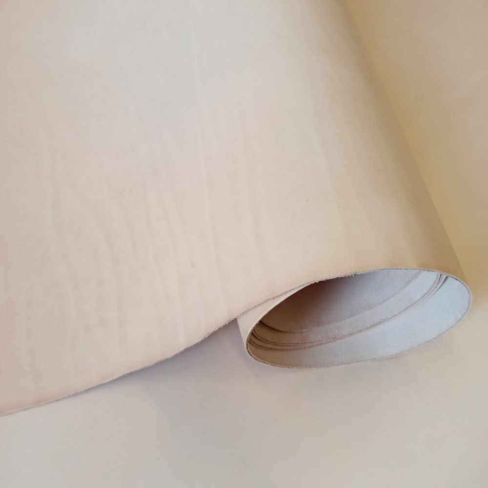 Кожа растительного дубления, не окрашенная, без финиша. производство Америка. Бахтарма ровная, не ворсистая. Лицо гладкое, белое, имеет минимум дефектов. Кожа не пересушена, мягкая, пластичная, хорошо поддаётся тиснению и формованию. Светлый оттенок без желтизны - при окрашивании даёт минимум искажения цвету краски.