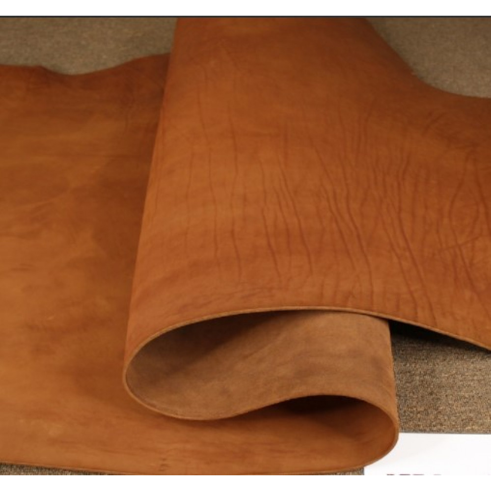 Шорно-седельная кожа в красте барабанного крашения (сквозной окрас), без покрытия. Бахтарма с низким ворсом, лицо гладкое, виден естественный узор. Подойдет для изготовления ремней, подтяжек, ножен, чехлов, кофров, саквояжей и других галантерийных изделий.