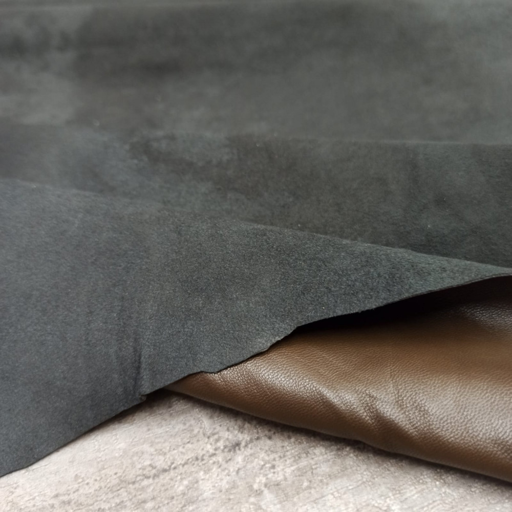 Кожа Овчина (МРС) комбинированного дубления с тиснением под змею. Толщина кожи 0,5-0,7 мм. Лицо с финишным покрытием, гладкая поверхность. Бахтарма ровная, бархатистая.
