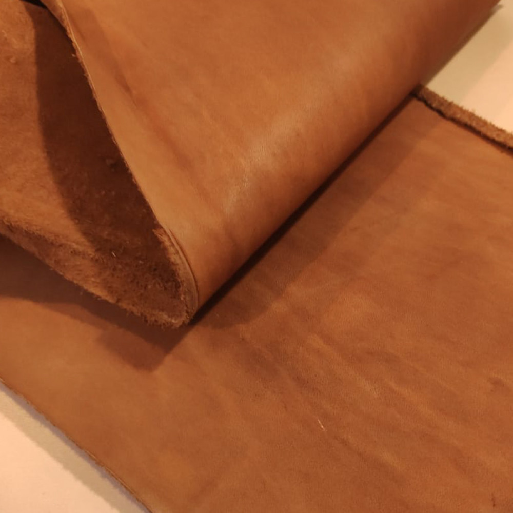 Пола без покрытия (в красте), производства Россия. Толщина 1,1-1,3 мм. Подходит для изготовления ножен, ошейников, ремешков и прочих мелких изделий. В меру пластичная, не сухая, плотная. Бахтарма с низким ворсом. Сортность: сорт 2-3