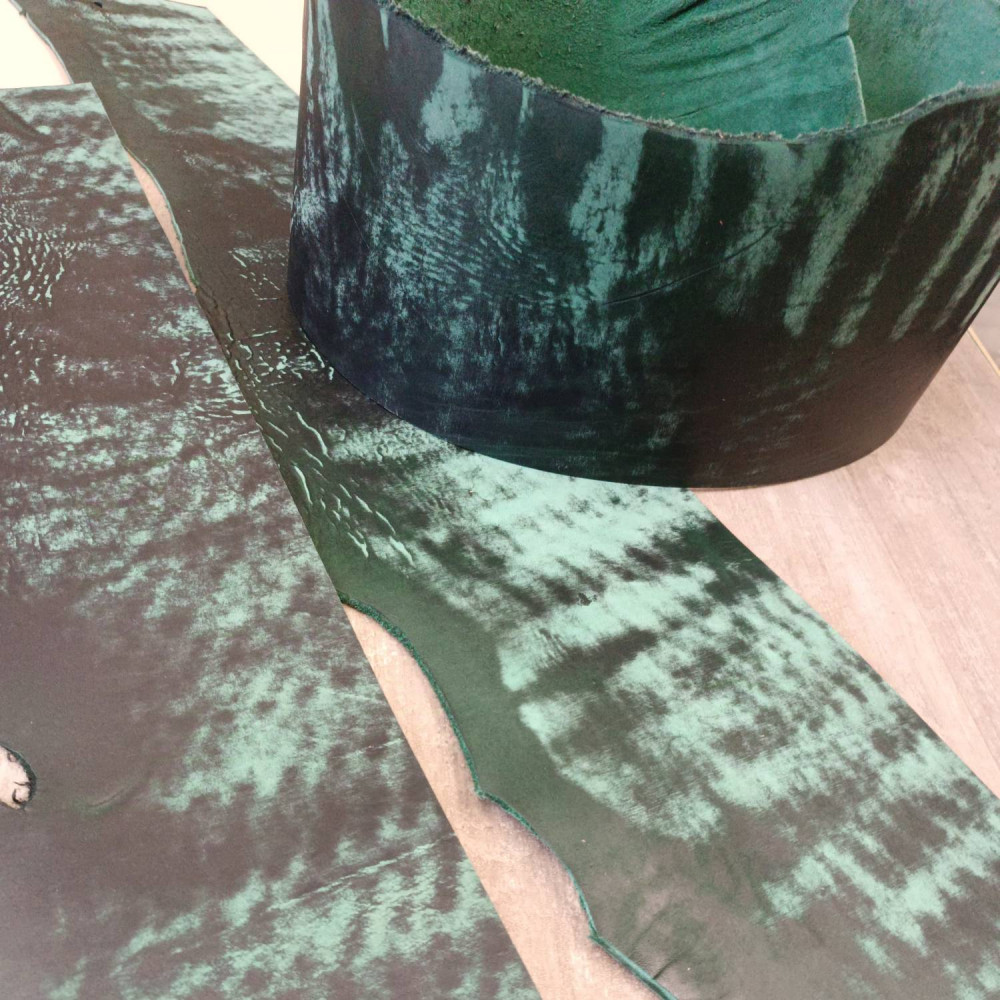 Подходит для изготовления ножен, ошейников, ремешков и прочих мелких изделий. В меру пластичная, не сухая, плотная.