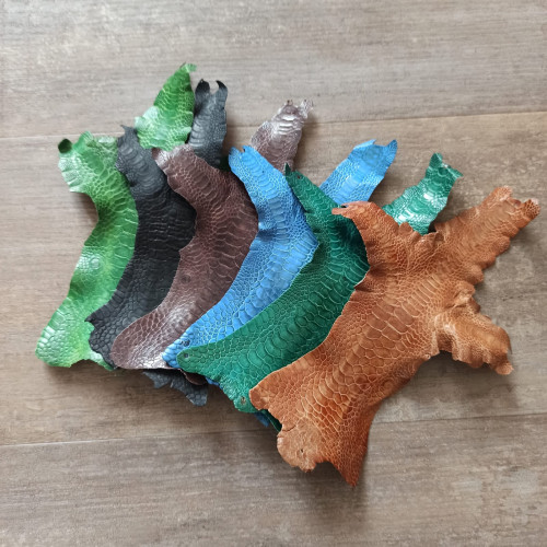 Натуральная кожа змеи галантерейной выделки. На видео можно посмотреть варианты расцветок змеин..