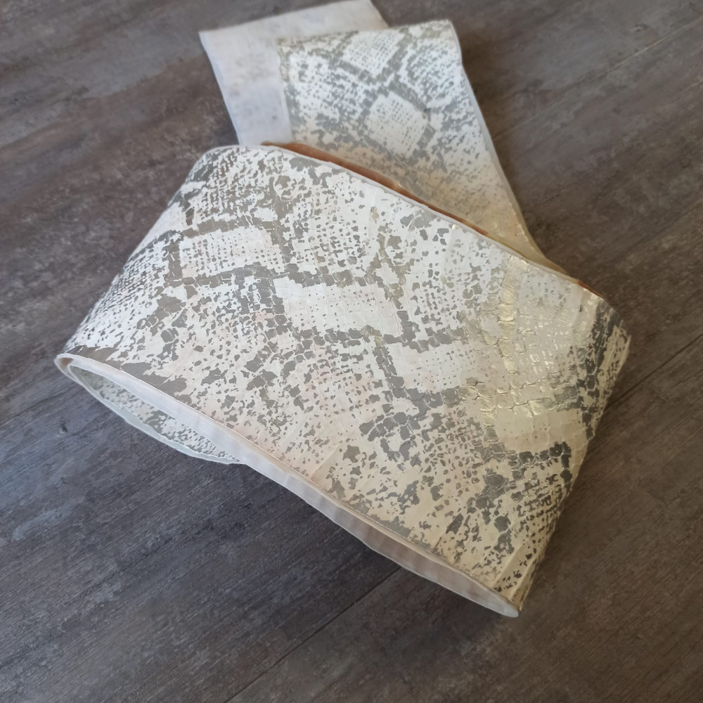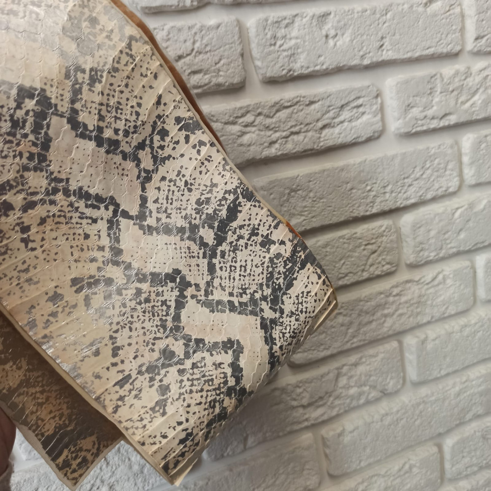 Натуральная кожа змеи галантерейной выделки. Наклеена на основу, что придает ей больше жесткости.