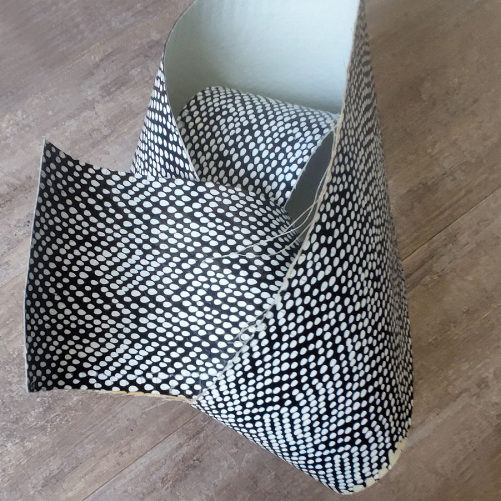 Пятнистый черно-белый 130см. Ширина 12 - 7 см. Толщина около 0,5-0,7 мм. на подкладе