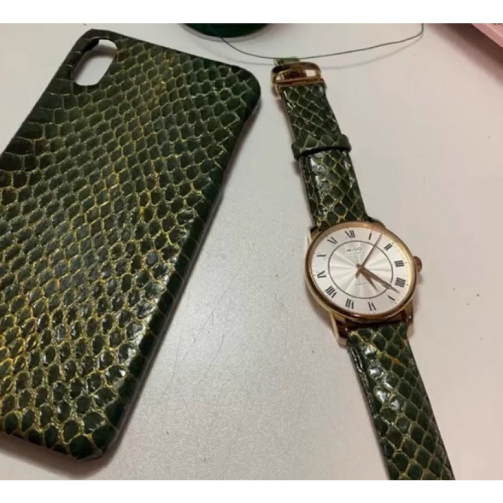 Змеиную кожу используют в качестве декоративных элементов при пошиве галантерейных изделий, а также как самостоятельный материал при изготовлении украшений, колье, браслетов, часовых ремешков, чехлов для телефона и других кожаных аксессуаров.