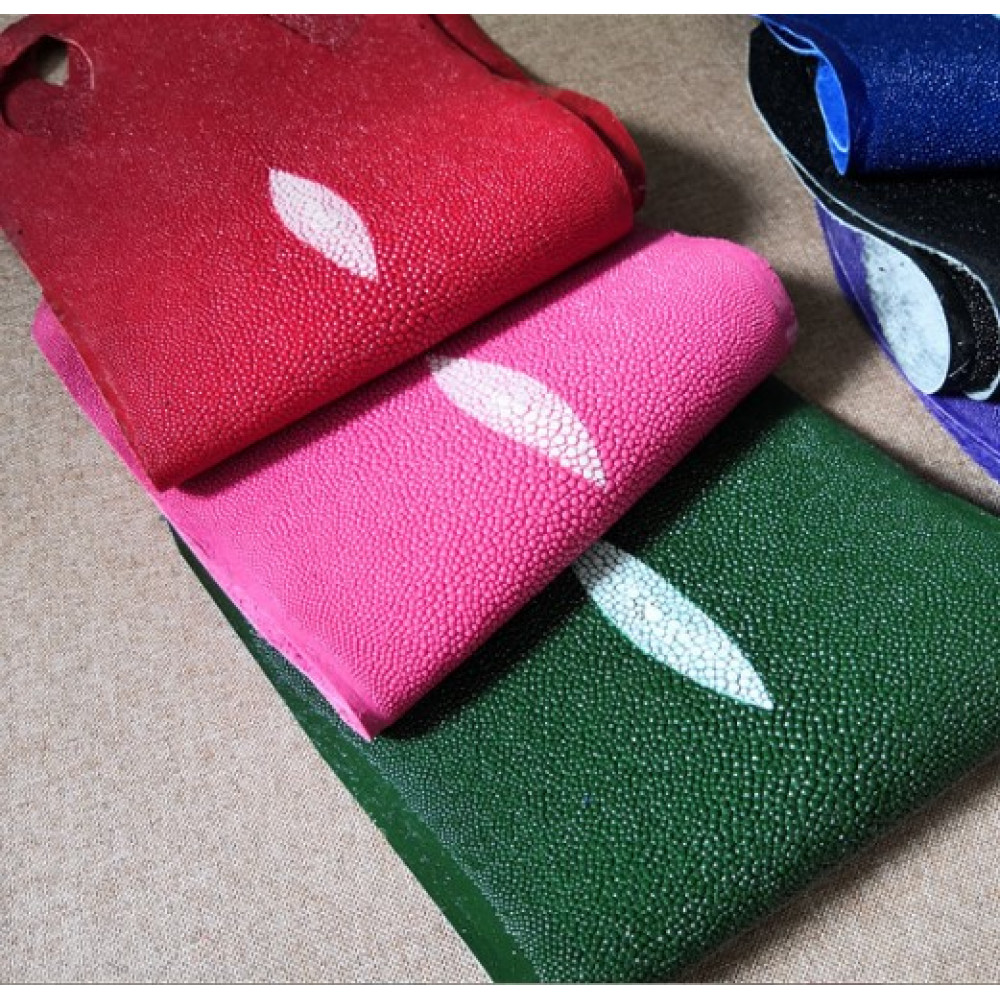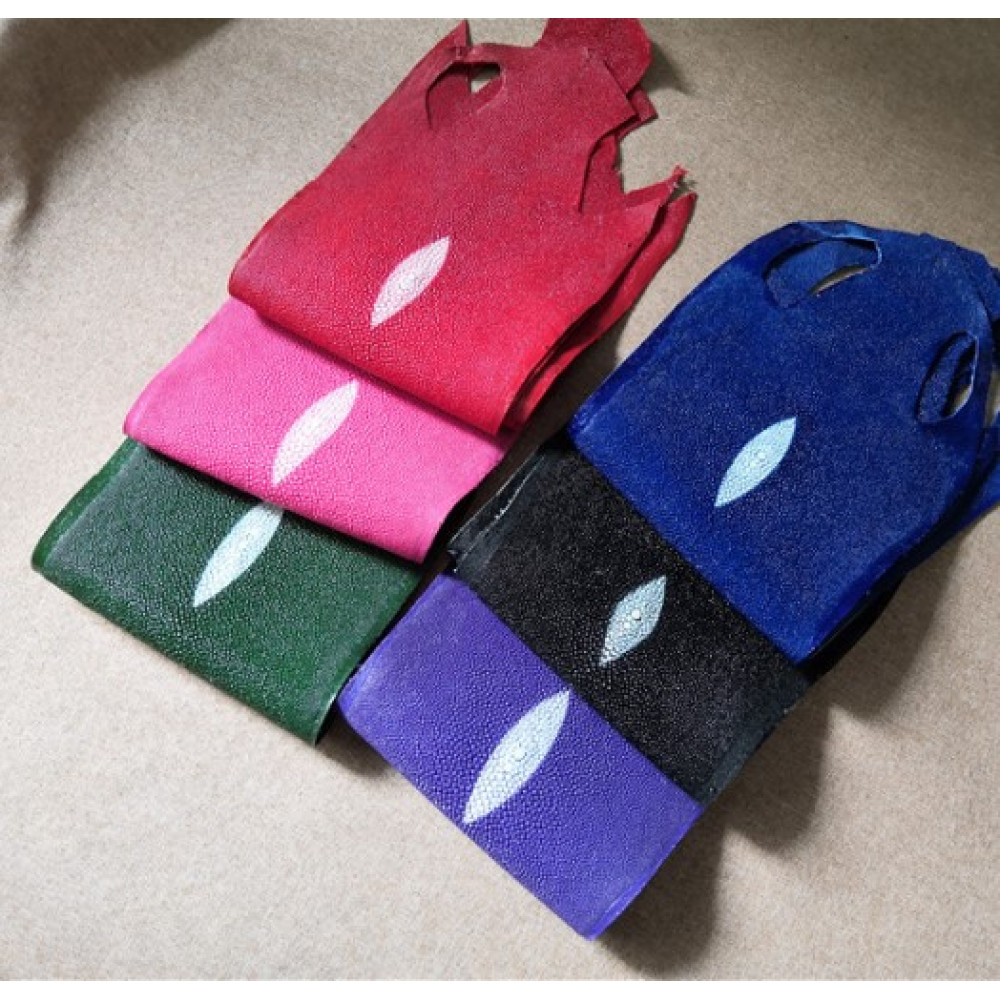 Натуральная кожа ската разных цветов, посмотреть можно на видео