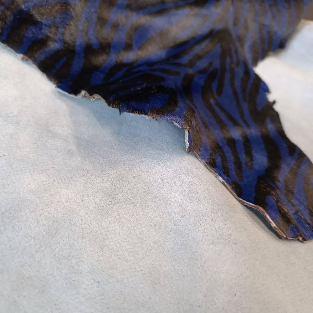Кожа с ворсом (мех пони) 0,8-1.1 мм Зебра Синяя Италия