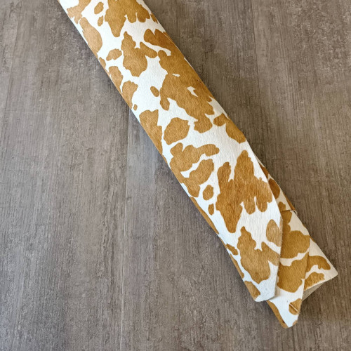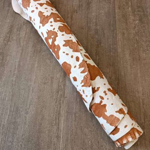 Натуральная кожа КРС с ворсом, принт под корову, светло коричнево -рыжие пятна на белом фоне. В..