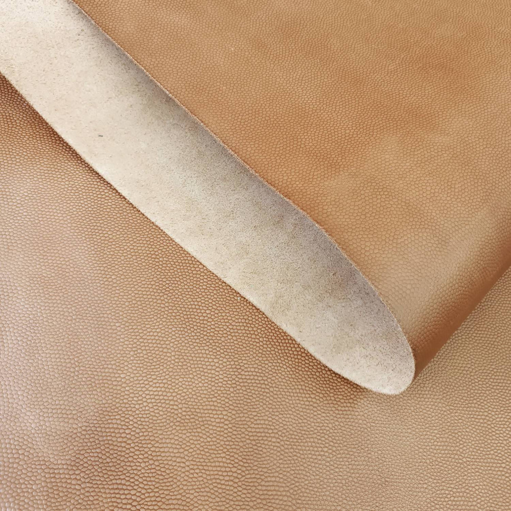 Кожа КРС хромового дубления - лицевая, с тиснением Шагрень. Благодаря этой текстуре с диагональным мелким тиснением кожа приобретает высокую прочность и устойчивость к истиранию, царапинам. Кожа с финишным глянцевым покрытием.