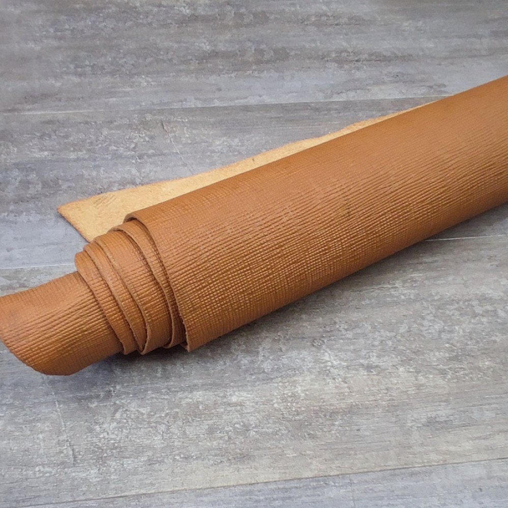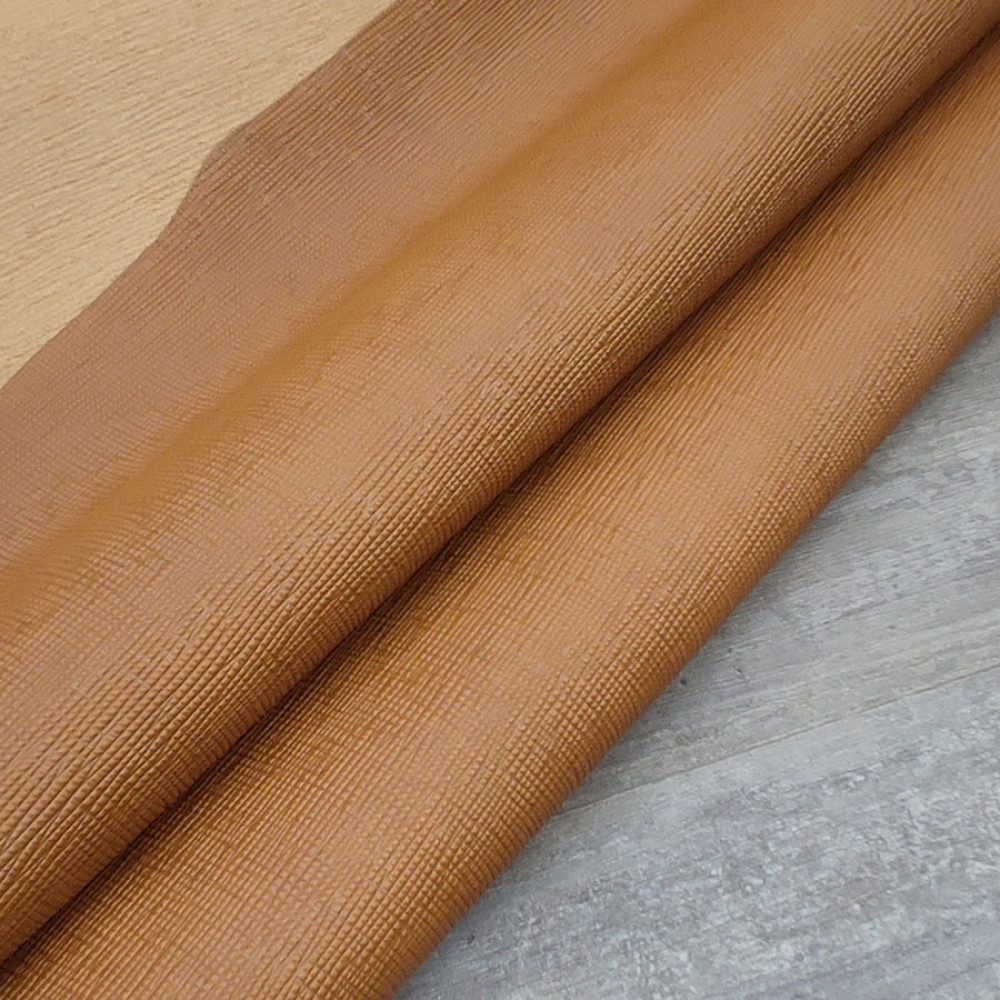 Благодаря этой текстуре с диагональным мелким тиснением кожа приобретает высокую прочность и устойчивость к истиранию, царапинам. Кожа с финишным покрытием
