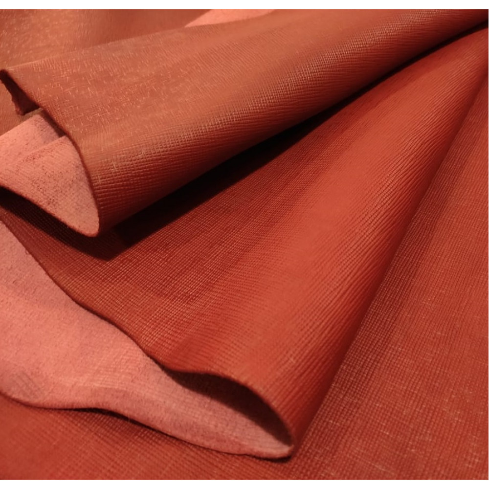 Итальянская кожа КРС хромового дубления - лицевая, с тиснением Сафьяно. Благодаря этой текстуре с диагональным мелким тиснением кожа приобретает высокую прочность и устойчивость к истиранию, царапинам. Кожа с финишным покрытием
