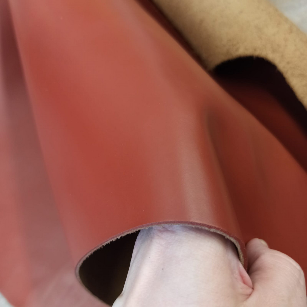 Кожа хромового дубления из шкур КРС. Эластичная, с подшлифованной лицевой поверхностью, с эмульсионным покрывным крашением, мелким тиснением «Пылевидка», толщина 1,2-1,4 мм.