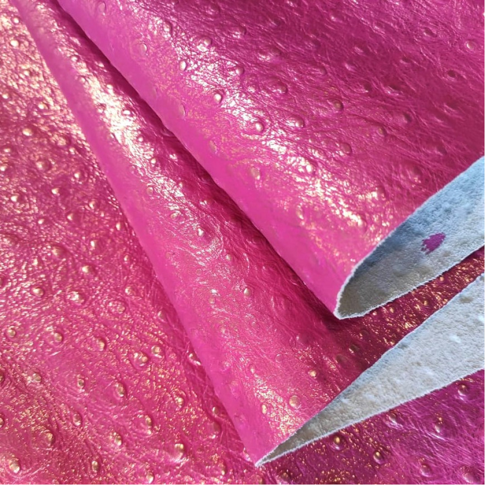 Кожа натуральная КРС хромового дубления с тиснением под страуса. Кожа тонкая, плотная, в меру мягкая. Лицо гладкое, матовое с сатиновым блеском, сияющее покрытие.