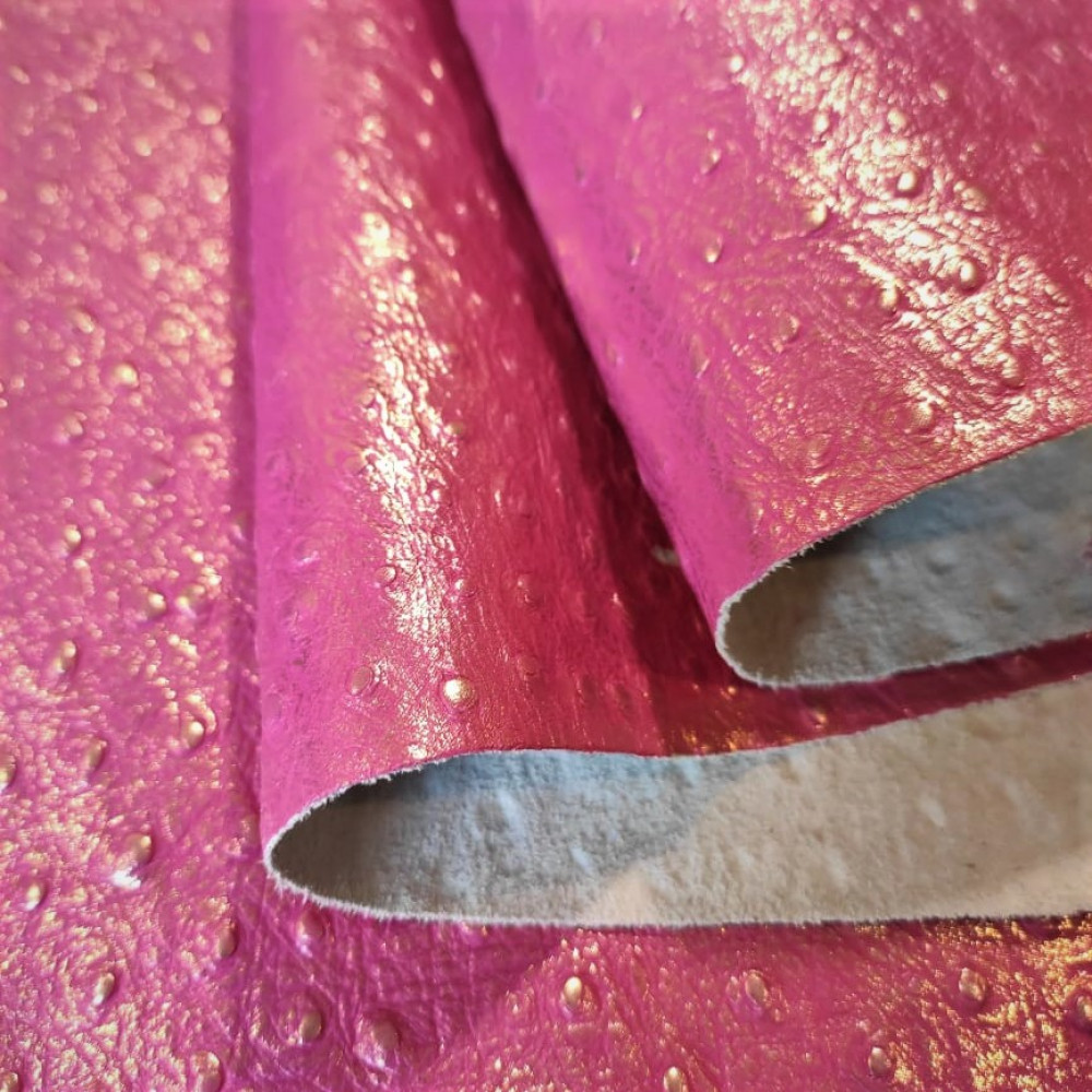 Кожа Страус 1,0 мм Розовый с золотым Италия