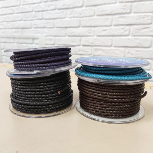 Шнур кожаный (КРС) плетеный круглого сечения, диаметр 3 мм (возможно отклонение диаметра шнура по дл..