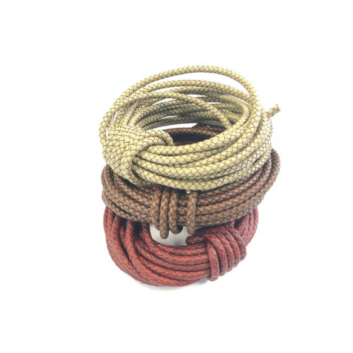 Шнур кожаный (КРС) плетеный круглого сечения, диаметр 6 мм, с кордом (сердечником) внутри. Цвета шну..