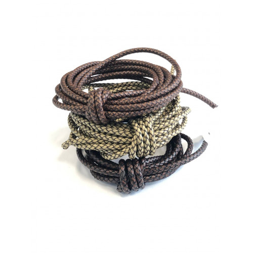 Шнур кожаный (КРС) плетеный круглого сечения, диаметр 5 мм, с сердечником внутри. Цвета шнуров можно..