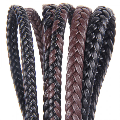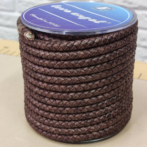Шнур кожаный плетеный круглого сечения диаметр 6 мм. Кожаные полоски оплетены вокруг корда. Бл..