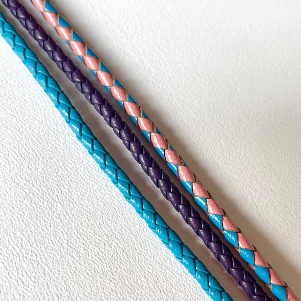 Цвета шнура состоит из переплетения голубого и розового цвета.
