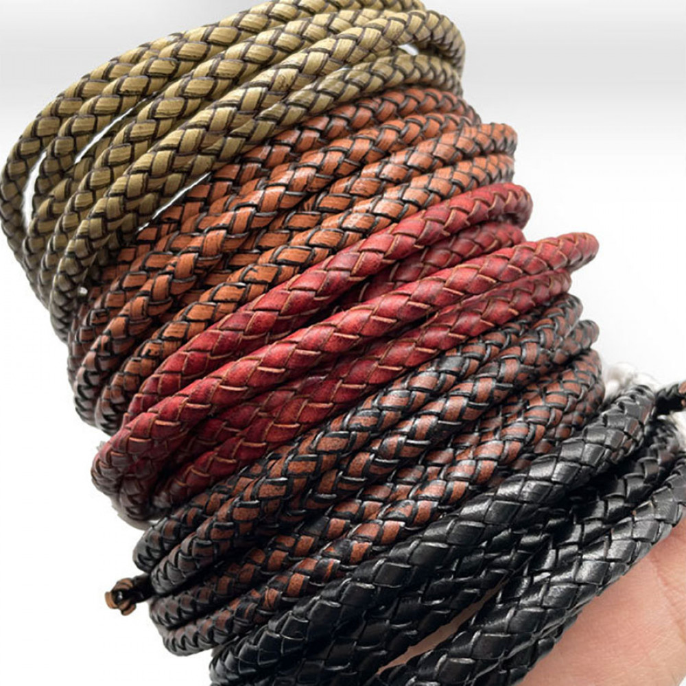Шнур кожаный круглого сечения 4 мм плетеный Ретро 20 см