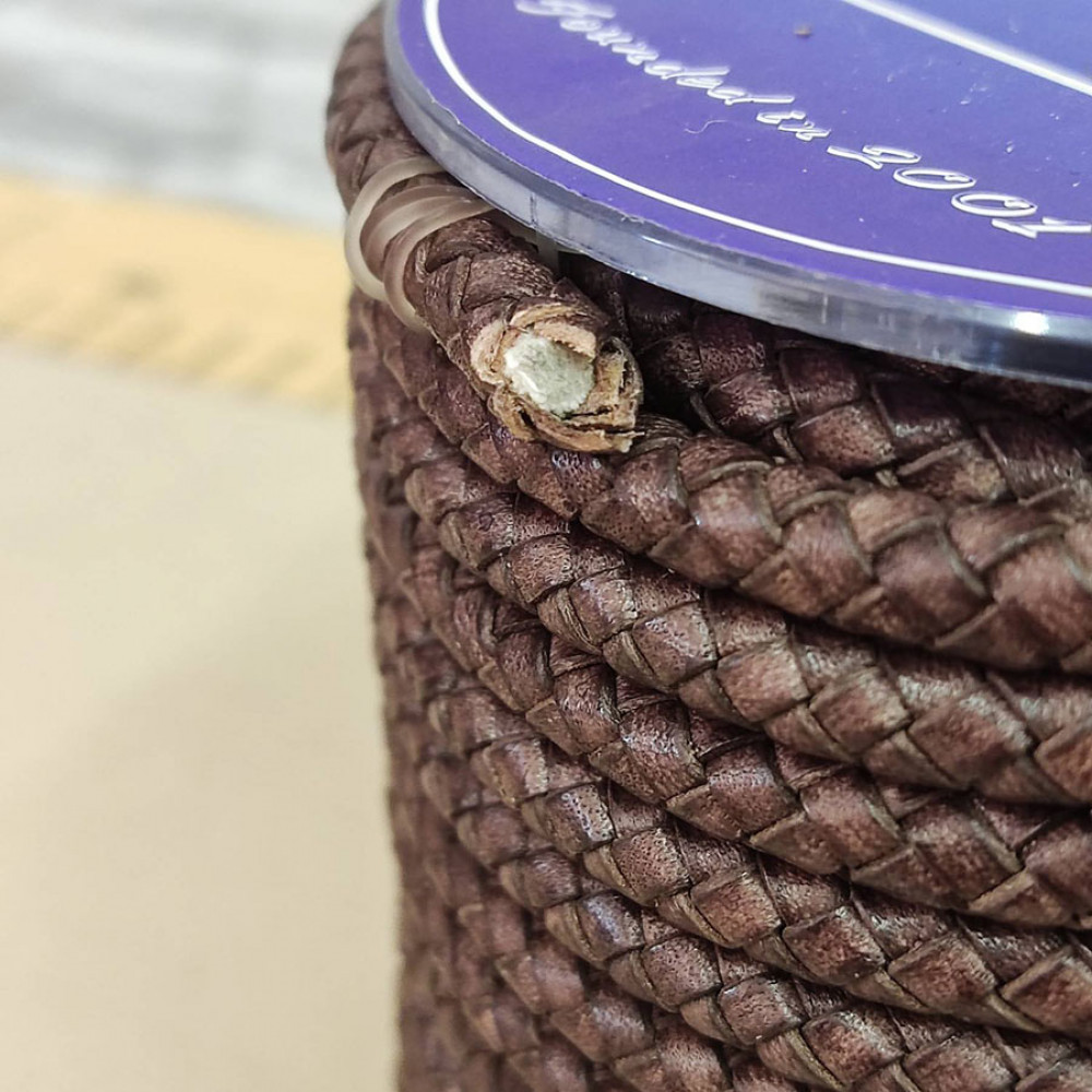 Шнур кожаный круглого сечения 6 мм плетеный 20 см Коричневый ретро LC