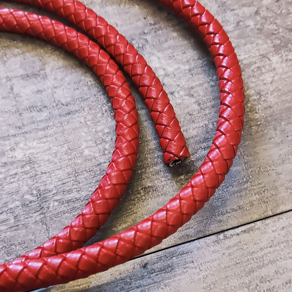 Шнур кожаный (КРС) плетеный круглого сечения, диаметр 8 мм, с кордом (сердечником) внутри. Цвета шнуров можно выбрать в списке опций