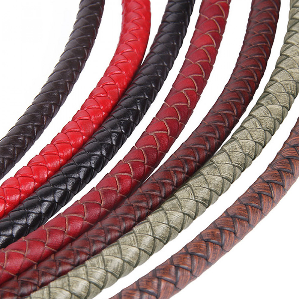 Шнур кожаный (КРС) плетеный круглого сечения, диаметр 8 мм, с сердечником внутри. Цвета шнуров можно выбрать в списке опций