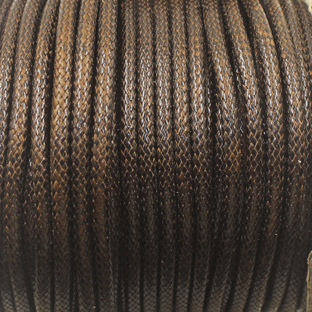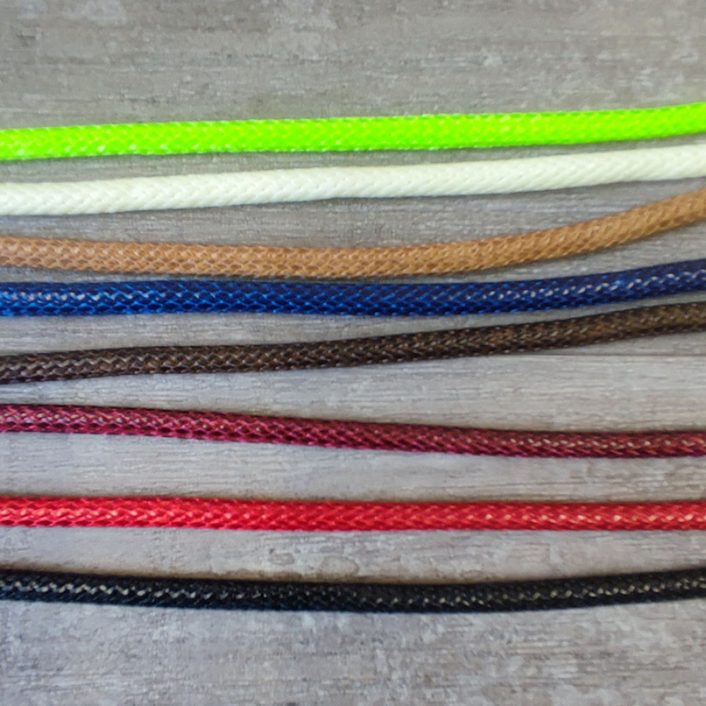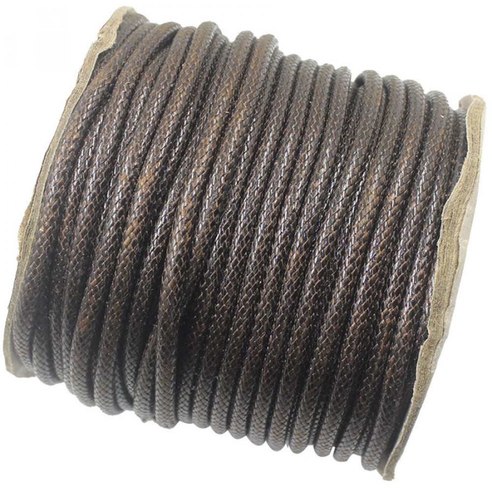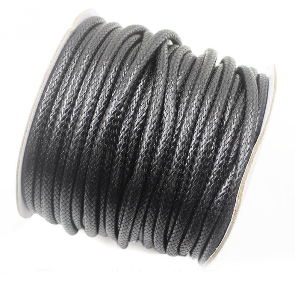 Шнур круглый, диаметр 5 мм, из высококачественного полиэфирного волокна, обработанного методом высокотемпературного прессования - за счет этого достигается эффект вощения, шнур приобретает приятный блеск и гладкость