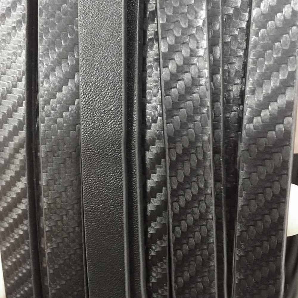Шнур из искусственной кожи (микрофибра) двухслойный плоский 12х3 мм цвет черный. Урезы, обратная сторона шнура обработаны.