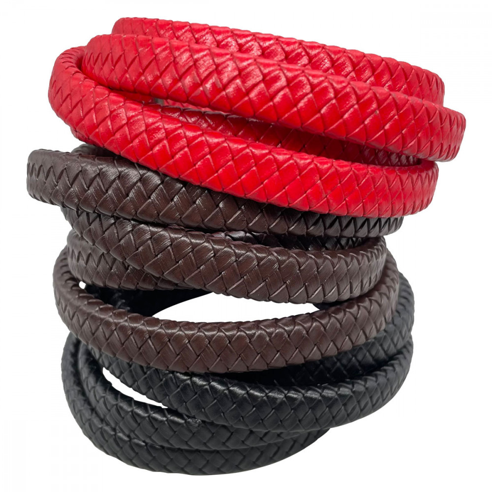 Шнур из натуральной кожи КРС интересного сложного плетения с сердечником (кордом) внутри. Сечение кожаного шнура 10х5 мм, цвет черный, коричневый (можно выбрать в списке опций)