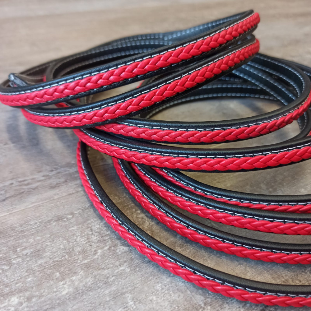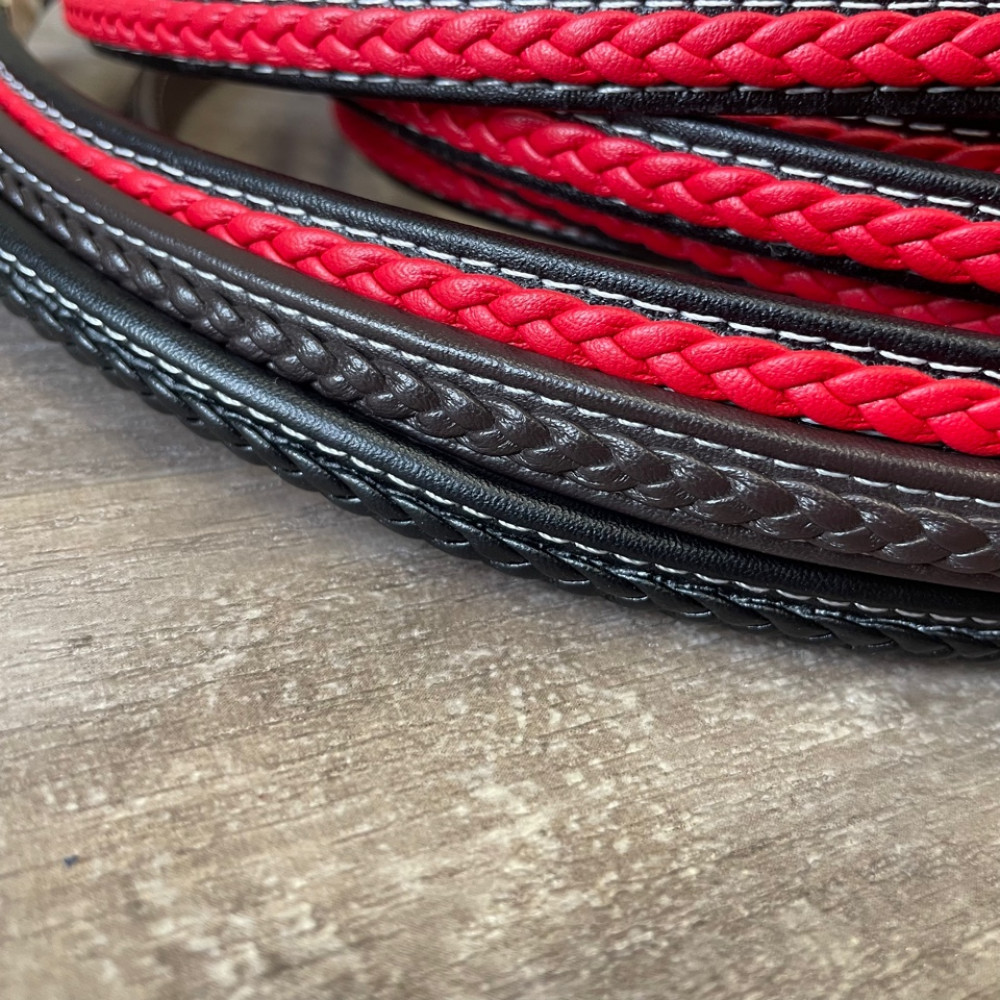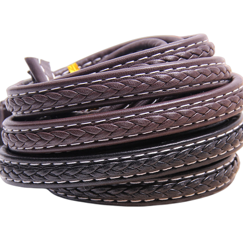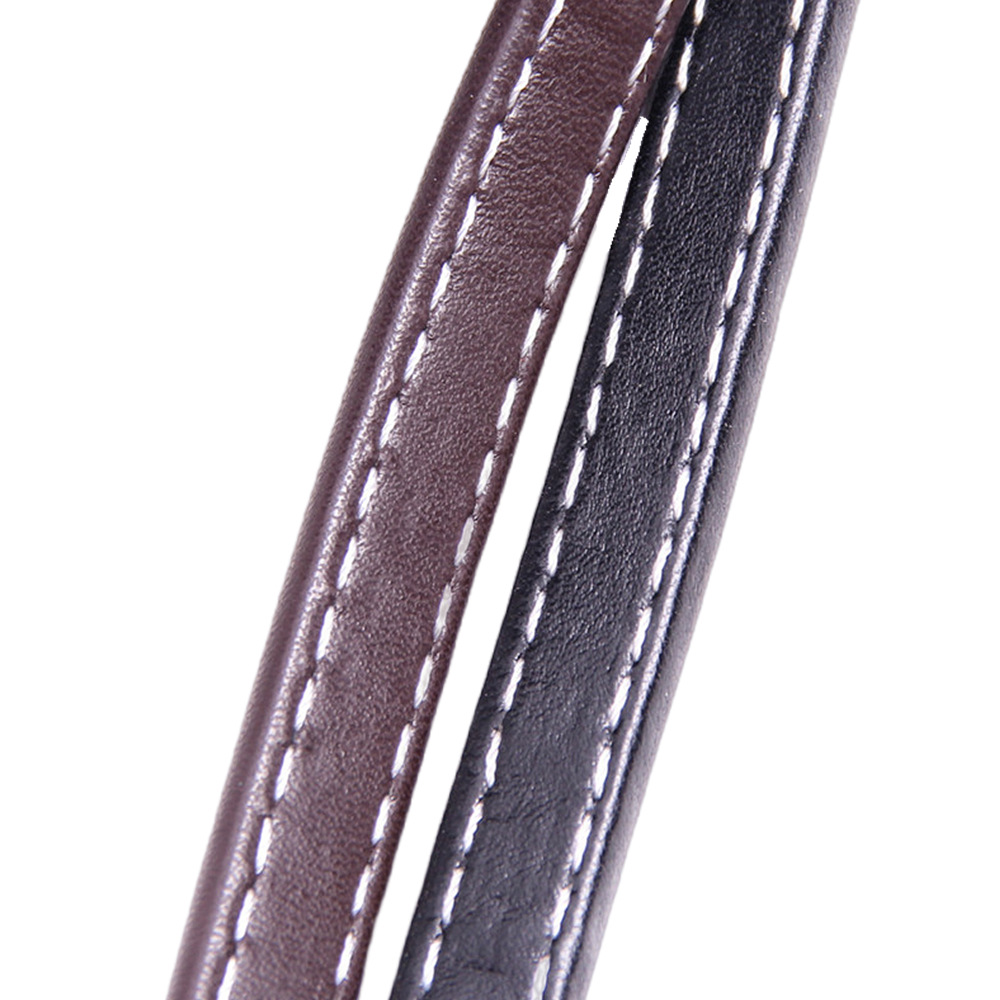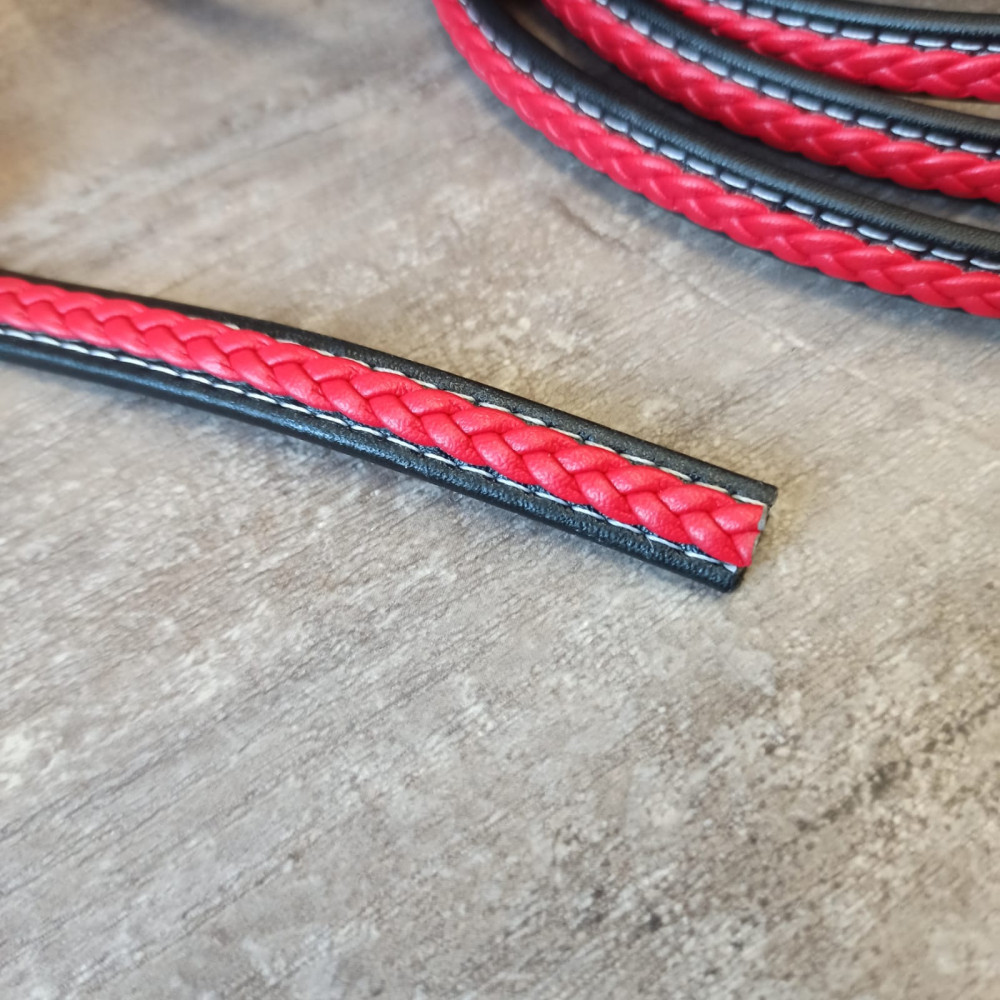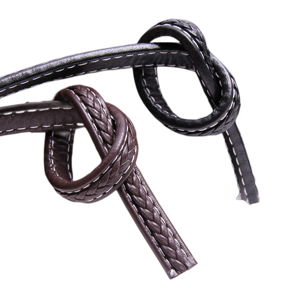 Шнур из искусственной кожи (микрофибра) двухслойный - на плоской основе лежит плоская плетеная "косичка". Сечение кожаного шнура 12х6 мм, цвет черный и коричневый - можно выбрать в списке опций. По краям шнур прошит белой нитью, что придает особую прочность краям