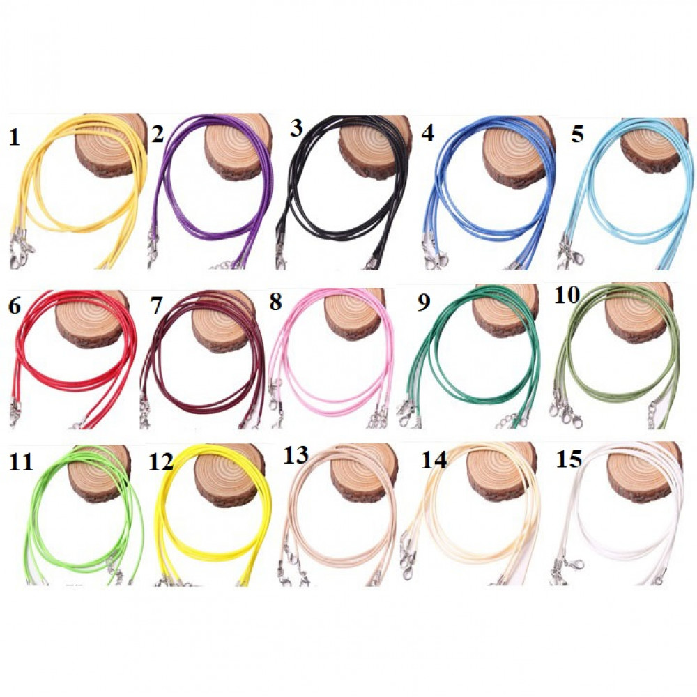 Шнур 1,5 - 2,0 мм вощеный 45 см с застежкой для подвесок Корея