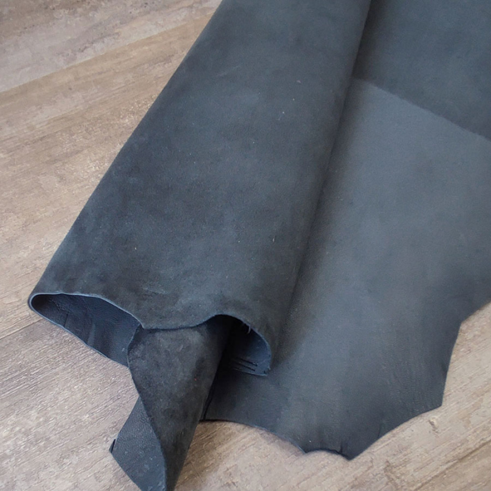 Кожа козы (МРС) хромового дубления галантерейной выделки. Толщина кожи 0,9-1,0 мм. Лицо зашлифованное под велюр. Бахтармы нет. Цвет ровный, однородный.