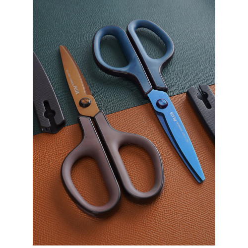 Ножницы металлические с титановым покрытием для кожи от японского производителя. Лезвия дугообразные..