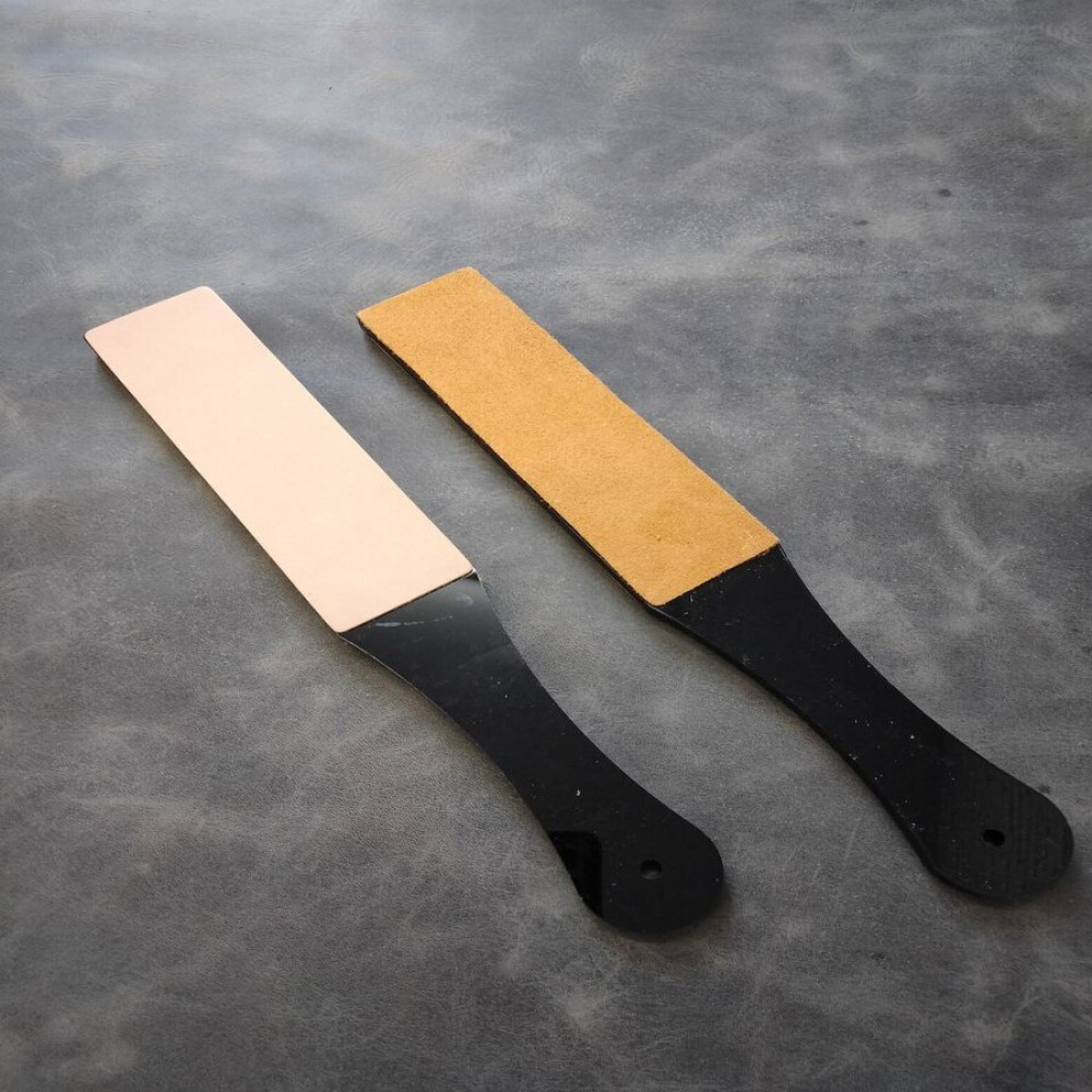 Правило деревянное с кожаными накладками разной фактуры используется для заточки