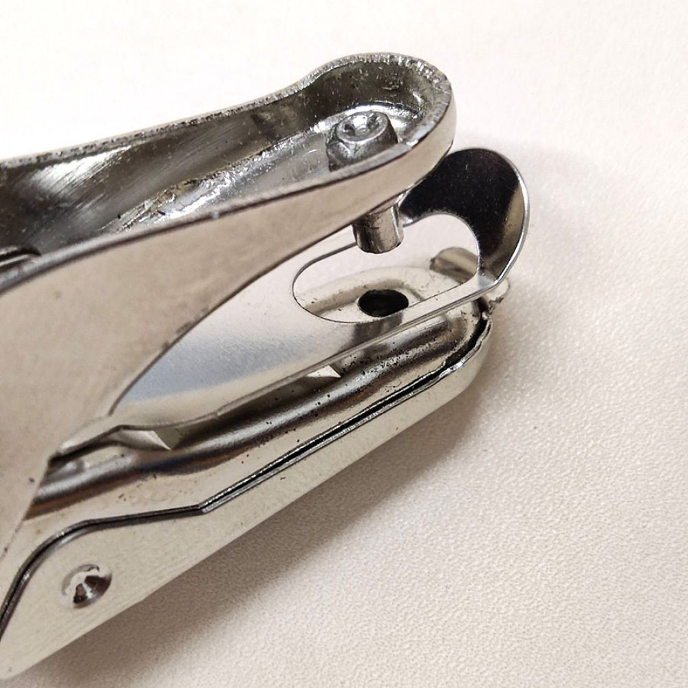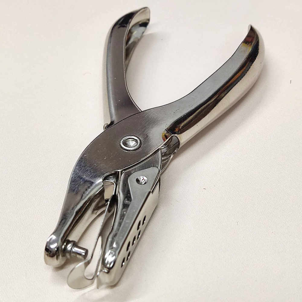 Металлический дырокол для бумаги (до 6 листов), фетра, кожкартона, кожи. Пробивает кожу до 1,2 мм