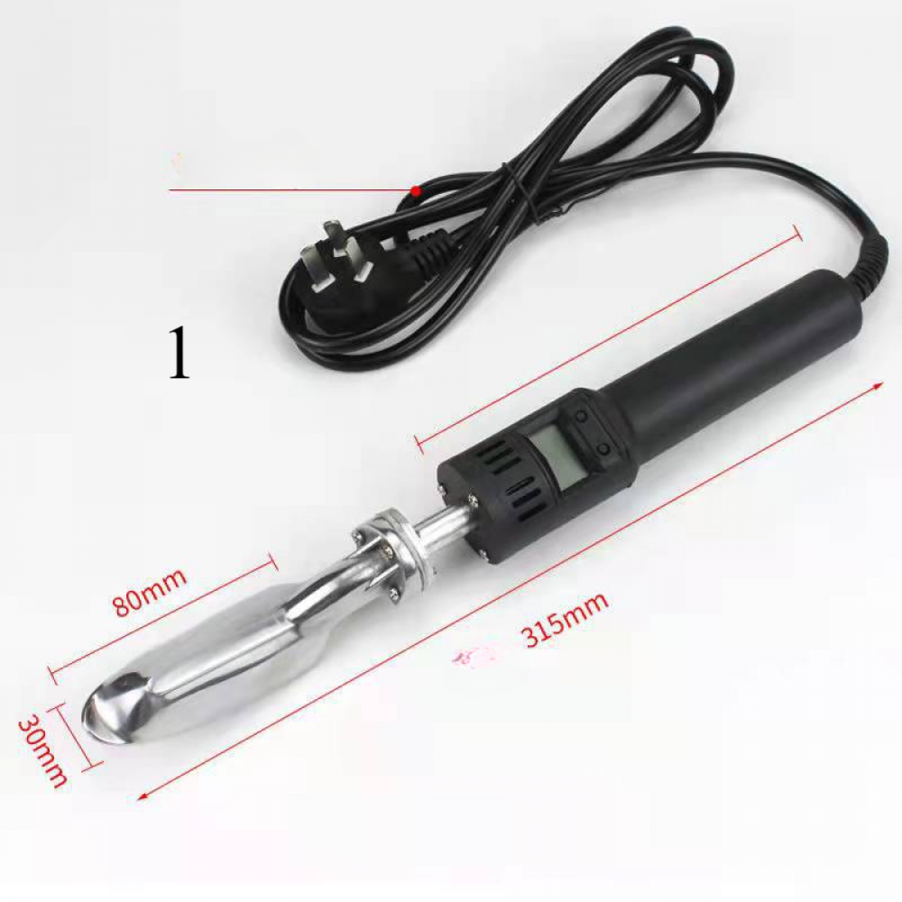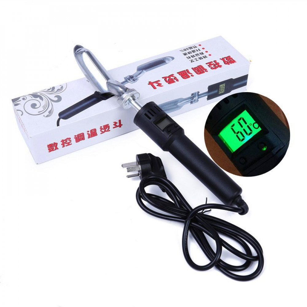 1 - электороутюжок имеет терморегулятор с дисплеем, длина инструмента 315 мм, диаметр ручки 32 мм. Размер рабочей части нагревательного элемента 80*30 мм