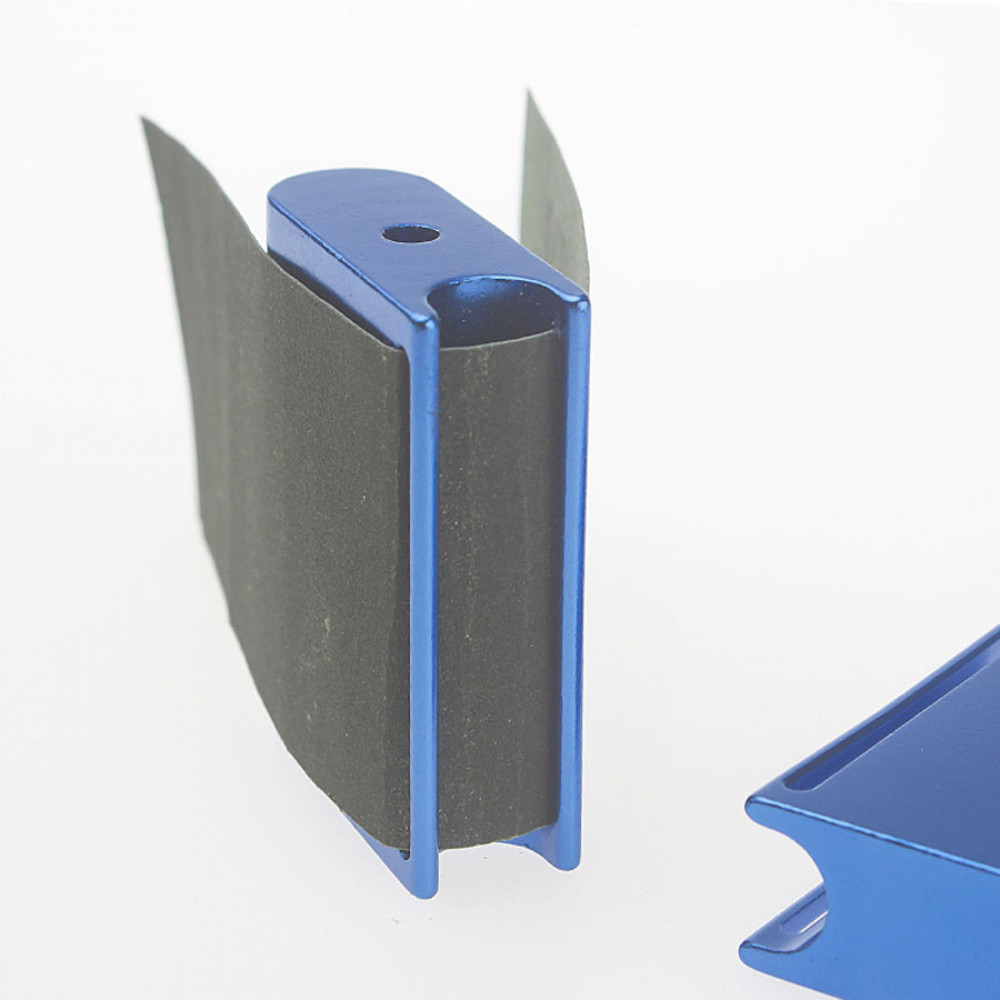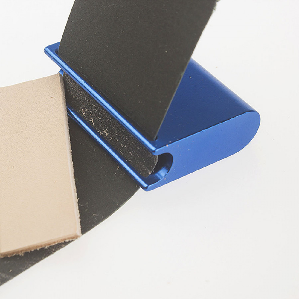 Специальное приспособление для шлифовки уреза кожи - алюминиевый сликер. В приспособление вставляется и удобно крепится наждачная лента.