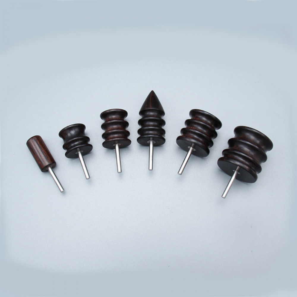 Сликер из ценных пород дерева в виде насадки на дрель (гравер). Шлифовальные головки предназначены для качественной полировки торцов (урезов) кожи.