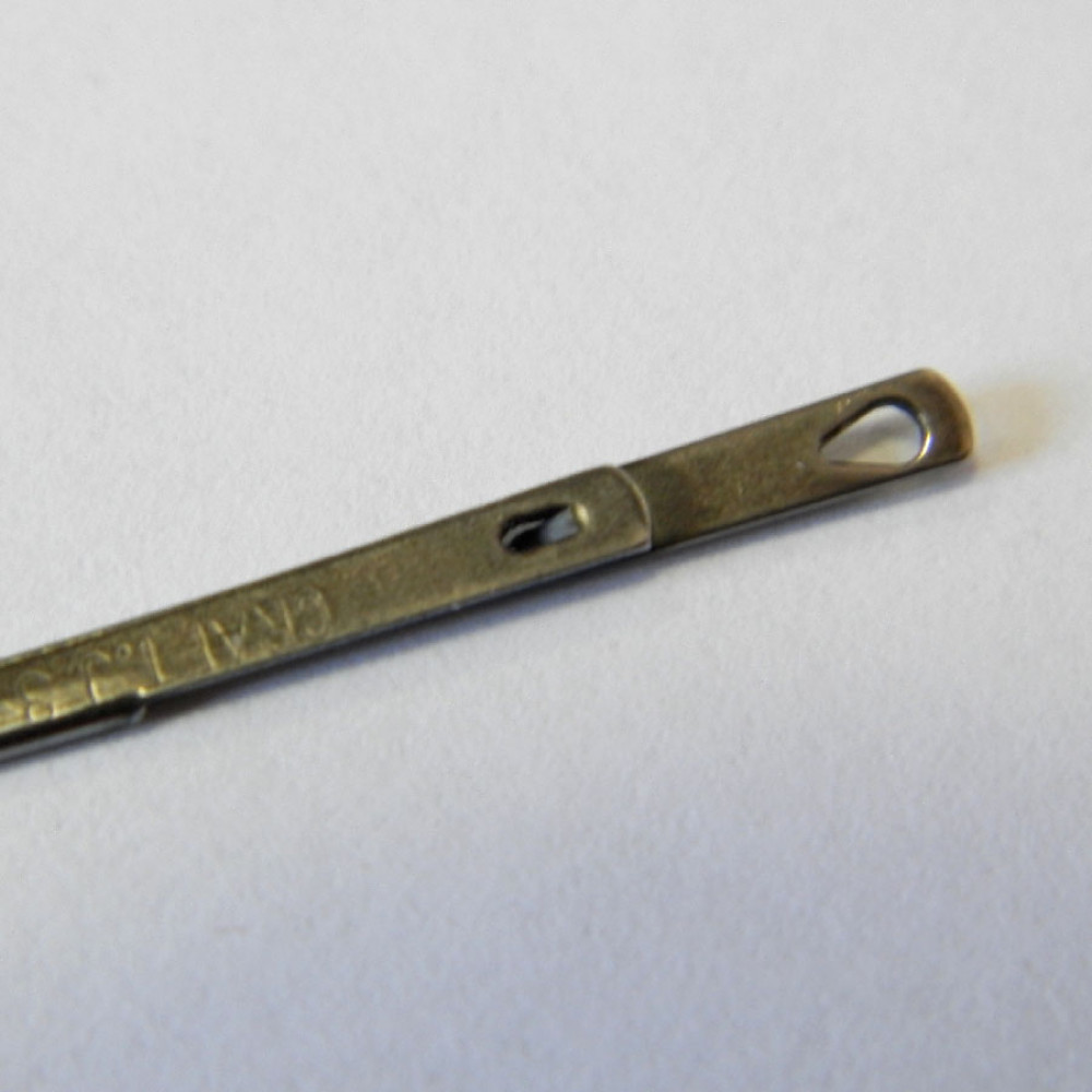 Плоские иглы с затупленным кончиком для кожевенных работ, сверху имеют отверстие, также конструкция иглы предусматривает возможность "защипнуть" шнур (есть один защип). Благодаря защипам конец шнура зажимается и может проходить сквозь узкие отверстия для шва.