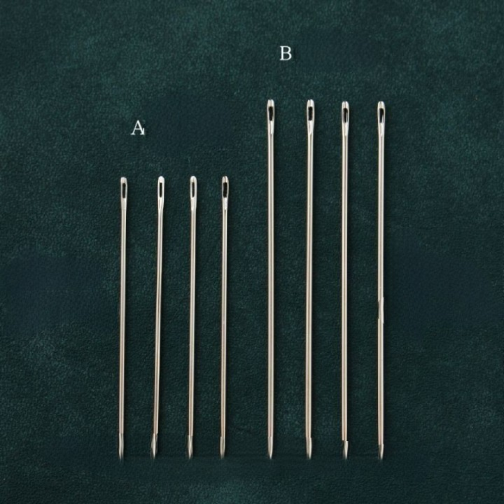 В - длина 54 мм, толщина 1,05 мм. Подходят для пошива более крупных изделий из кожи.