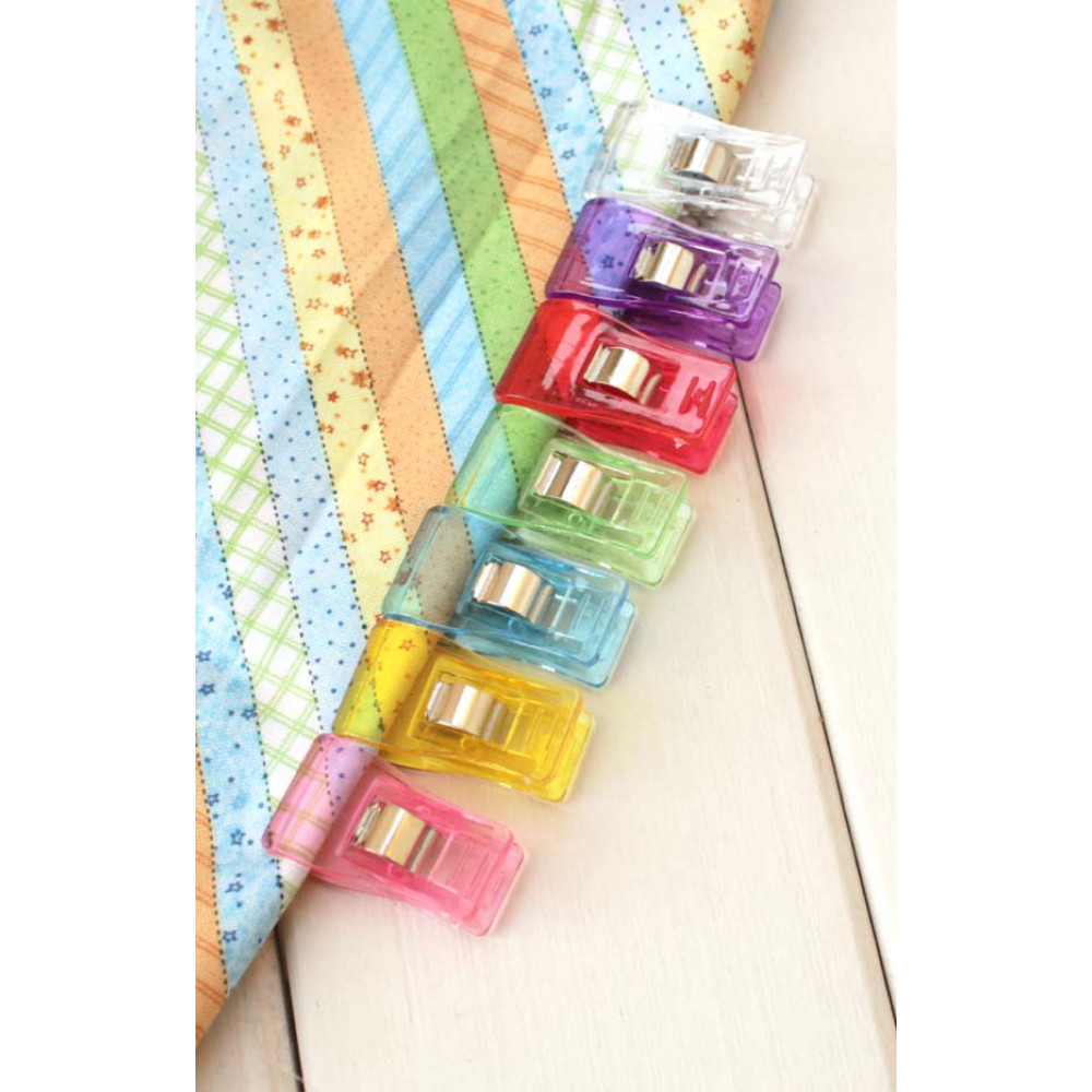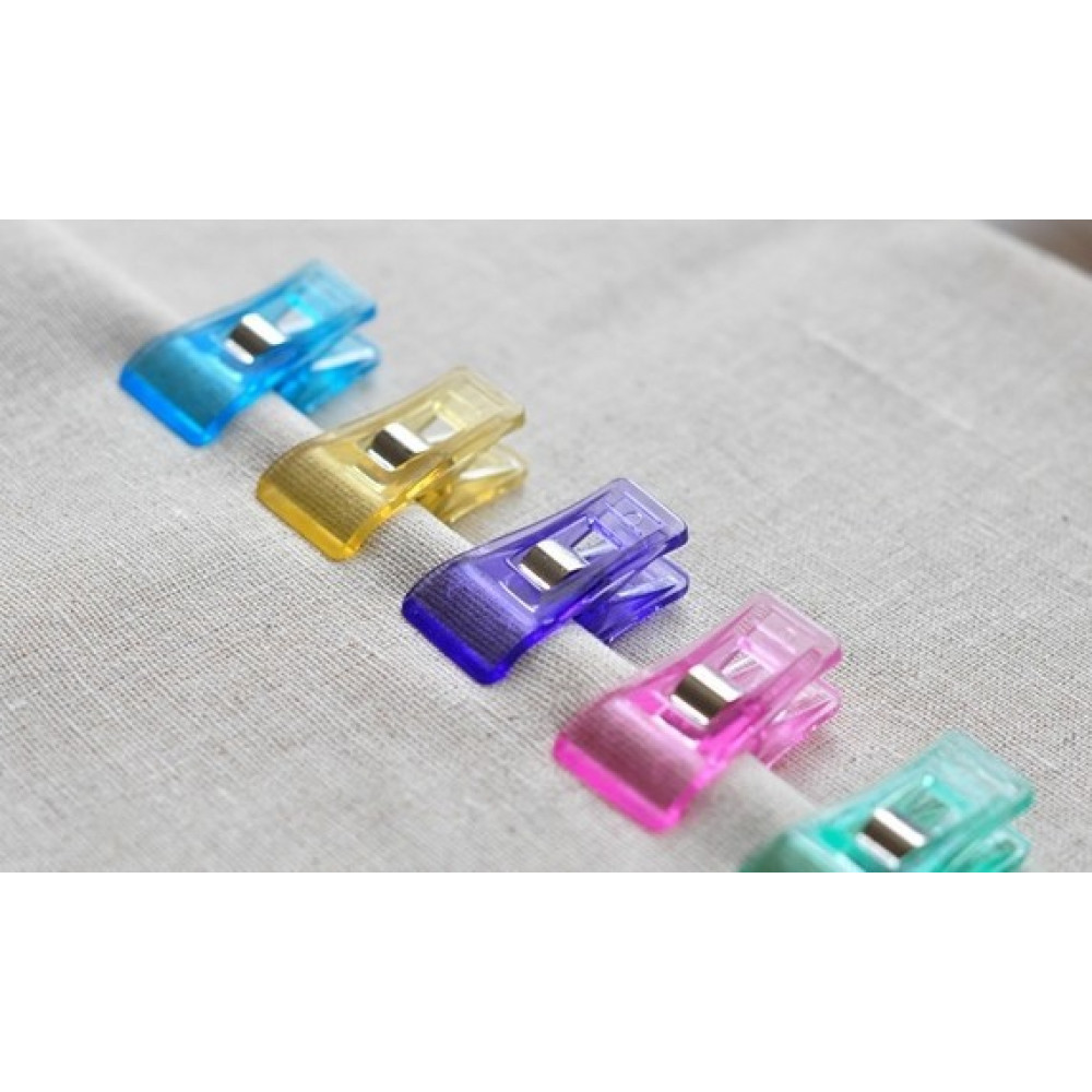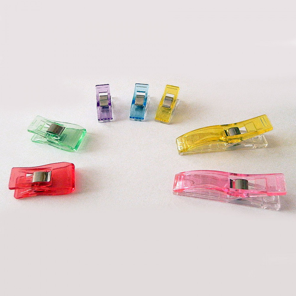 Используются для фиксации кантов, обработки краев сумок, косметичек и др. Это прекрасная альтернатива швейным булавкам. Прозрачность клипсы позволяет увидеть, ровно ли закреплен край. Клипсы также имеют разметку для удобства маркировки шва. Благодаря ярким цветам клипсы хорошо видны на материале.