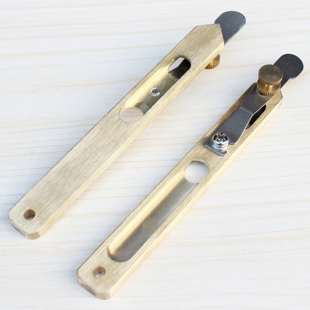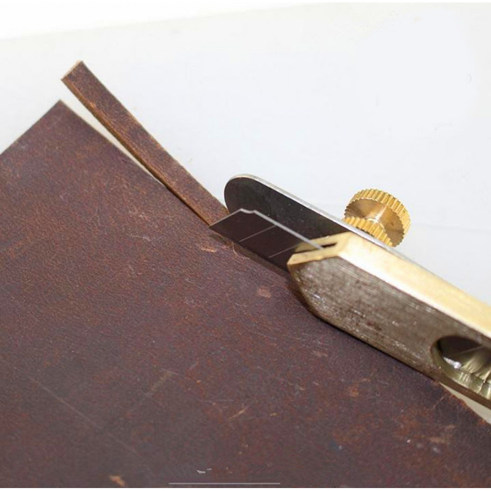 Нож для нарезки полос из кожи - специальный режущий инструмент для нарезки небольших полос из плотной кожи. Расстояние полосок – от 4 до 6 мм - фиксируется специальным регулировочным винтом. Лезвие сменное (обычное канцелярское лезвие 9 мм) - в комплект НЕ ВХОДИТ.