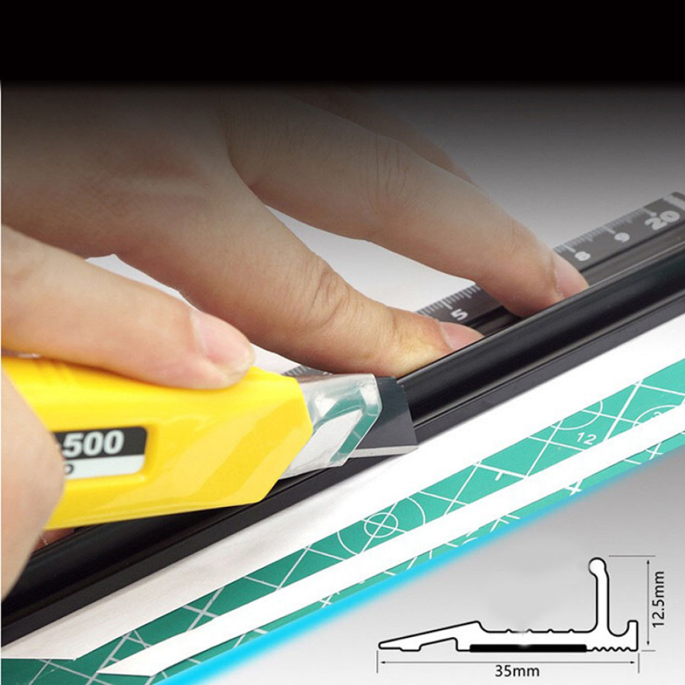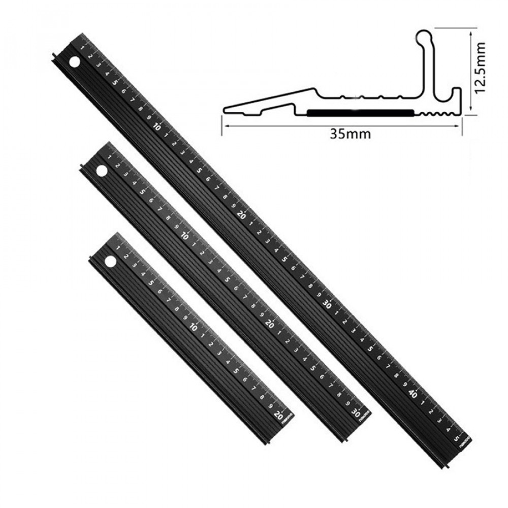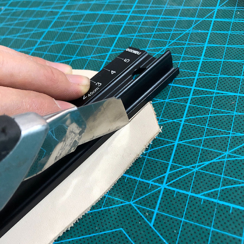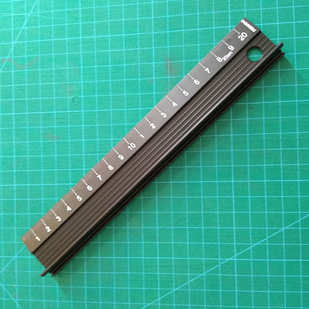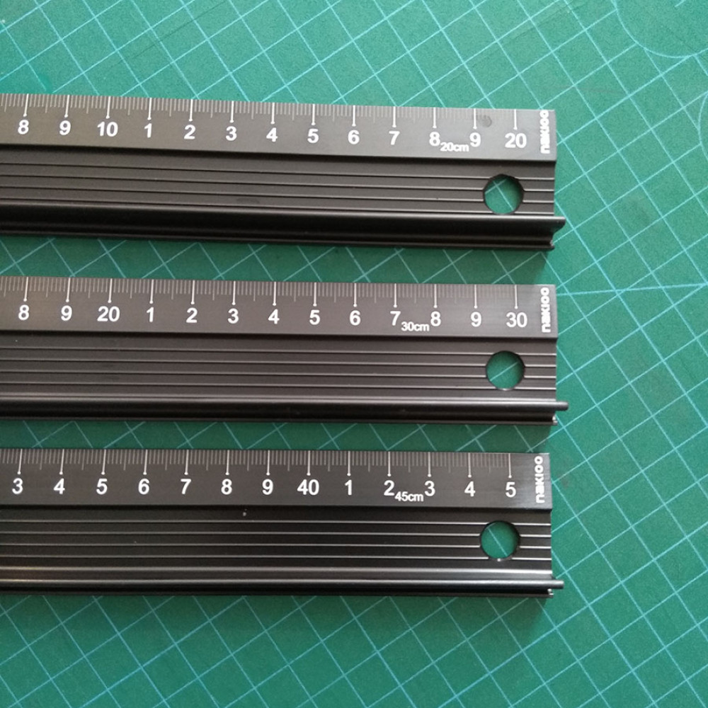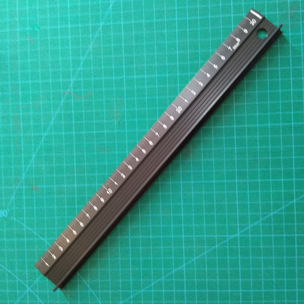- Линейка металлическая из алюминиевого сплава с протектором против скольжения и удобной "ручкой" для надежной фиксации линейки на поверхности материала. Такая линейка очень удобна при крое резаком