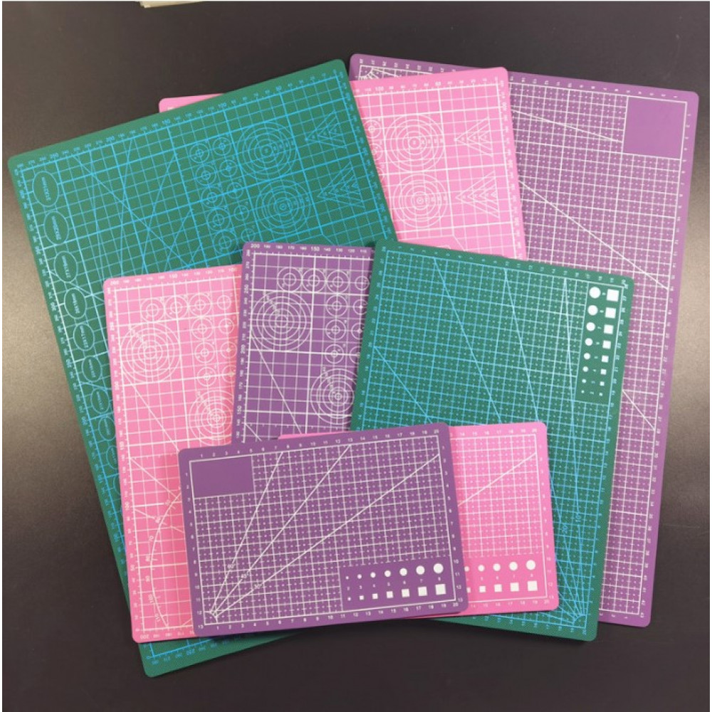 имеет удобную разметочную сетку (в см) и шаблоны. Обратите внимание - разметка на коврике различается в разных цветах и может меняться в зависимости от поставки. Если рисунок разметки важен, можете запросить уточнение в комментарии к заказу.