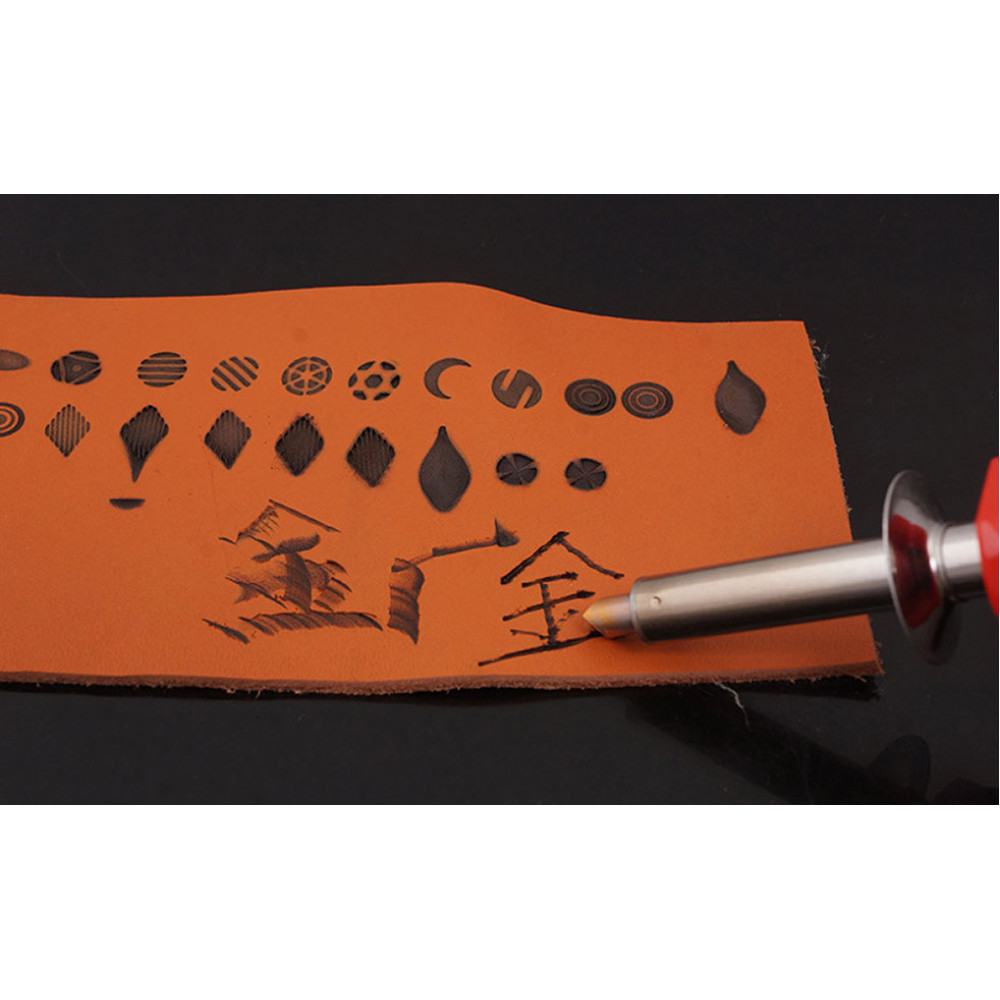 Инструмент для горячего тиснения по коже позволит нанести линии разных толщин и оттиски с различными рисунками (звезда, цветок, сердце и др.)