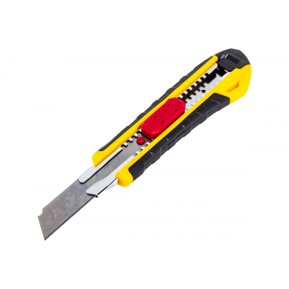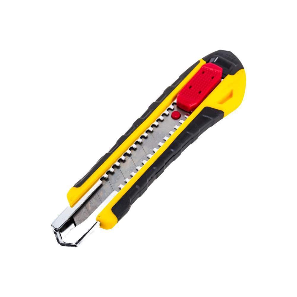 Этот недорогой нож с выдвижным лезвием и автостопом. Прочная прорезиненная рукоятка из АБС-пластика.