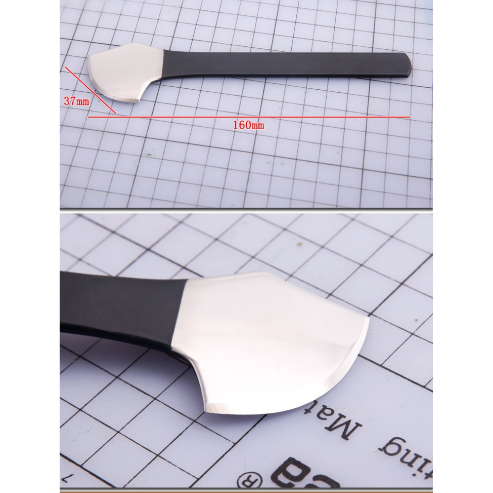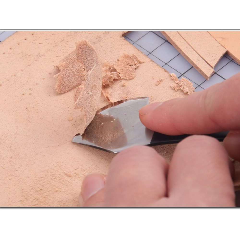Очень удобный закругленный нож для истончения мездры и краёв.