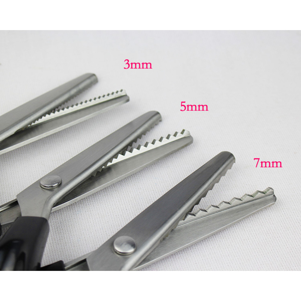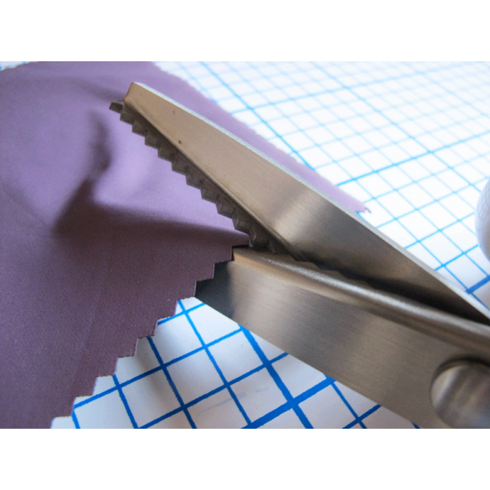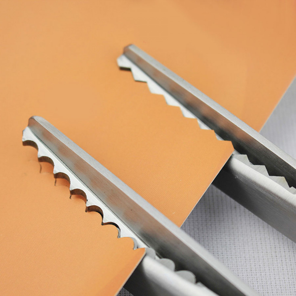 Подходят для ткани, кожи, фетра - любых плотных материалов. Ножницы острые, долго не тупятся, не заминают материал. Подходят для раскроя ткани, для обработки краев против обсыпания, а также для придания краям декоративного вида
