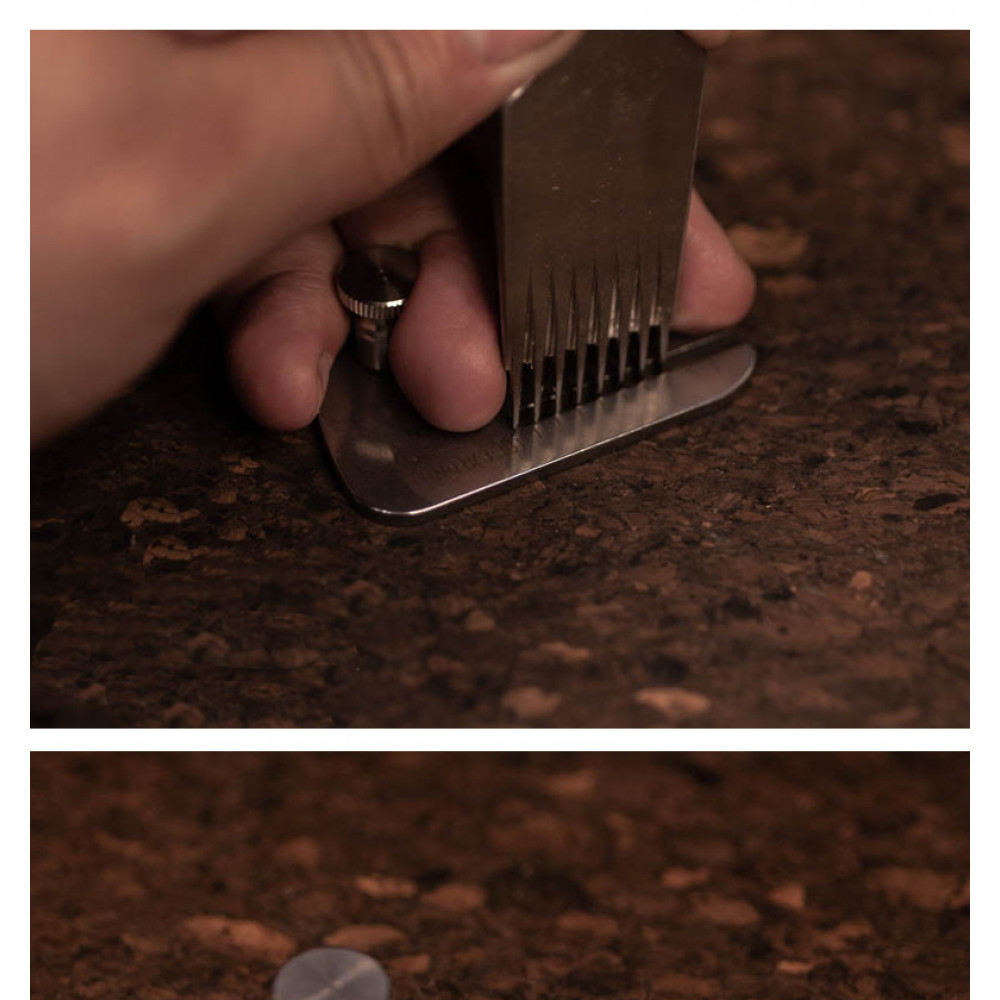 Ограничительная планка для строчных пробойников также помогает держать пробойник строго вертикально (перпендикулярно поверхности кожи) во время удара. Особенно такая планка будет полезна новичкам, у которых инструмент зачастую ломается из-за неправильной установки.